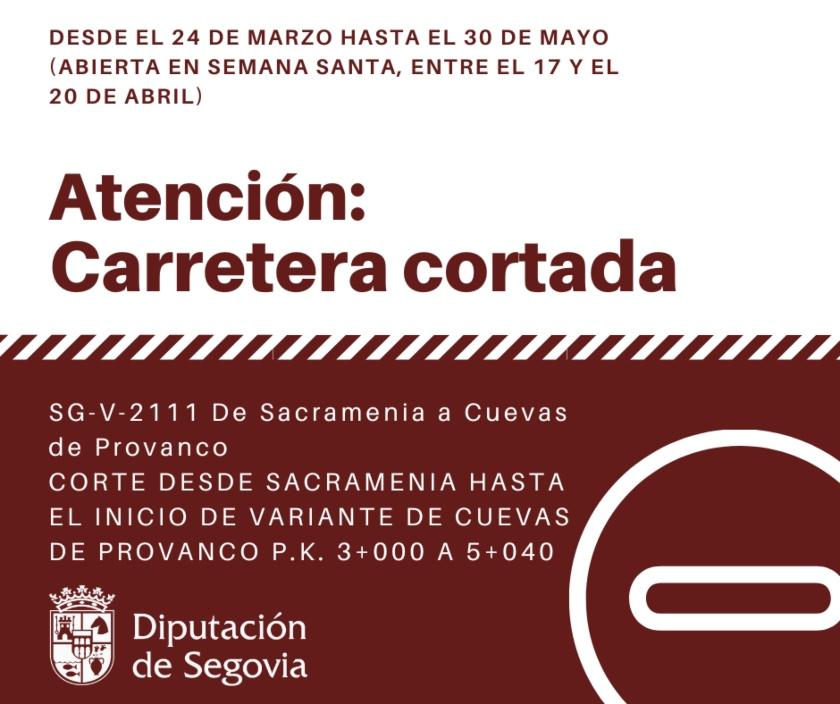 En el periodo en el que duren estos trabajos, para acceder desde Sacramenia a Cuevas de Provanco y viceversa, el tráfico se desviará por la carretera autonómica SG-241 (sentido Peñafiel) y la SG-V-2472 -por el Caserío de San José-, así como para acceder a Sacramenia desde las provincias de Valladolid y Burgos. Tanto el corte como los desvíos estarán señalizados con carteles en la carretera.
